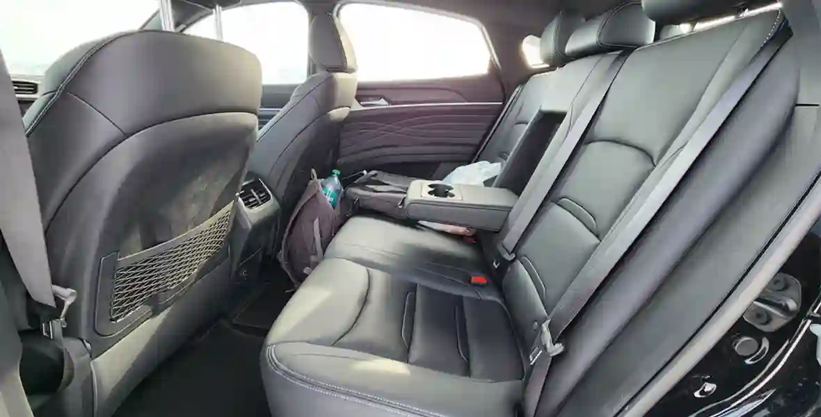 Несмотря на такой крупный багажник, задний ряд получился на удивление просторным. Колесная база у DFSK ix5 всего на два сантиметра меньше, чем у 7-местного ix7 (2790 мм против 2810 мм). Поэтому наличие жестких пластиковых накладок на спинках передних кресел никак не смущает. Свободного пространства перед коленями при посадке «сам за собой» (рост 186 см) остается много. Пол ровный, места для ступней даже в крупной зимней обуви остается с запасом. Над головой тоже свободно. Из дополнительных удобств: один разъем USB-A, розетка на 12V, ниша для телефона и раздельные дефлекторы вентиляции.